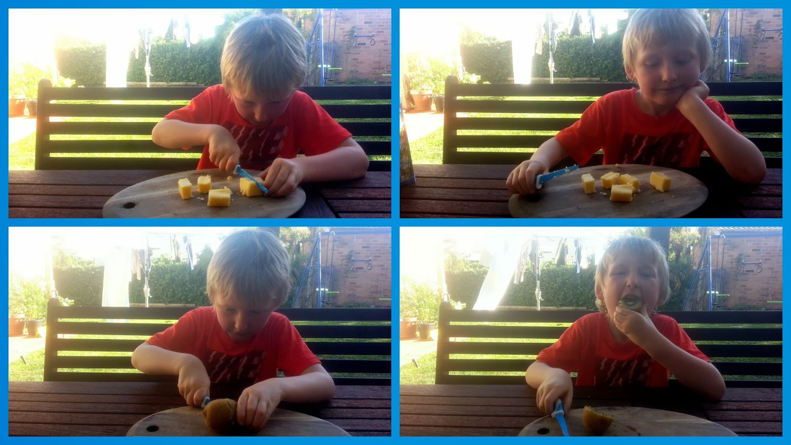 The KiddiKutter helps me get my five minutes more – and sometimes even more than that! While I nod back off to sleep for another sacred minute of sleep, Tyler heads into the kitchen. He pulls out his KiddiKutter and slices a banana into a bowl of yoghurt, or cuts up some kiwifruit or stone fruits. He cuts up a pear or an apple. He slices himself some cheese…. Ordinarily he would expect I jump out of bed with the same boundless energy he has, to do it for him at some early and ungodly hour. Not anymore. Liberation! Freedom! (Yes, that is precisely what 5 minutes of extra sleep feels like to me.)