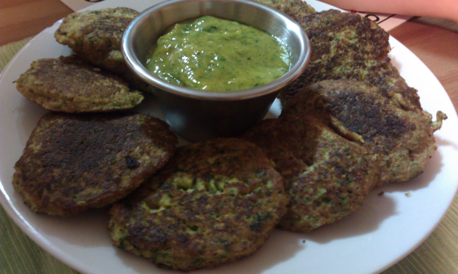 One was already destined for the mango sauce with dinner. We whizzed up the Cauliflower Broccoli Fritter mixture and started frying them in small batches, then whizzed up the sauce while the fritters were frying. My goodness! These are, without a doubt, the best veg fritters I have tasted. So much flavour – curry powder adds a tiny kick, and you pop open delicious fennel seeds as you chew… mmmmmmm!